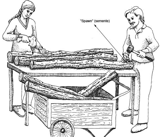 Para inocular o tronco deve utilizar-se micélio inoculado em cavilhas de madeira ou em serrim. As cavilhas/serrim inoculados serão inseridas nos buracos previamente abertos com o berbequim, que serão vedados com cera de abelha (apenas no caso de usar serrim necessita percorrer este processo de selagem do furos – no caso de usar cavilhas pode evitar este processo)