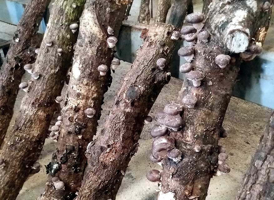 São diversas as espécies que podem ser produzidas em troncos de madeira, como o Ganoderma lucidum, o Pleurotus ostreatus, entre outras. Contudo, a espécie mais popular neste tipo de cultivo de cogumelos é, sem dúvida, o shiitake (Lentinula edodes).