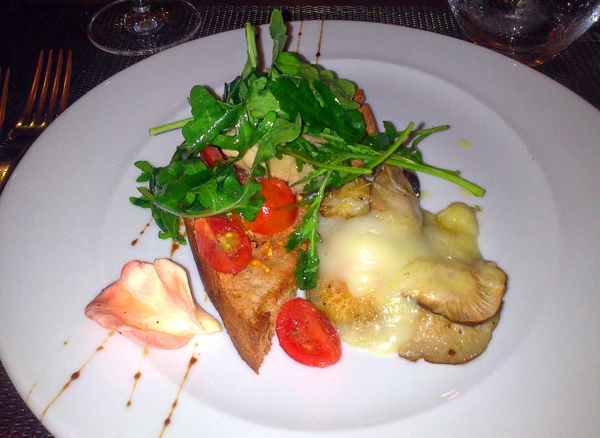 Acrescente 1,5 kg de cogumelos (Pleurotos ostreatus funciona muito bem neste prato) devidamente cortados, deixe evaporar parte da água que soltam e acrescente 1,5 dl de vinho tinto bom ou a vinha-d’alhos. Passados alguns minutos a reduzir o vinho acrescente um pouco de água e o arroz. Retifique de sal e deixe ferver durante 20 minutos.