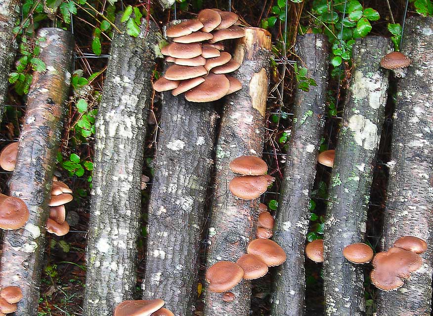 São diversas as espécies que podem ser produzidas em troncos de madeira, como o Ganoderma lucidum, o Pleurotus ostreatus, entre outras. Contudo, a espécie mais popular neste tipo de cultivo de cogumelos é, sem dúvida, o shiitake (Lentinula edodes).